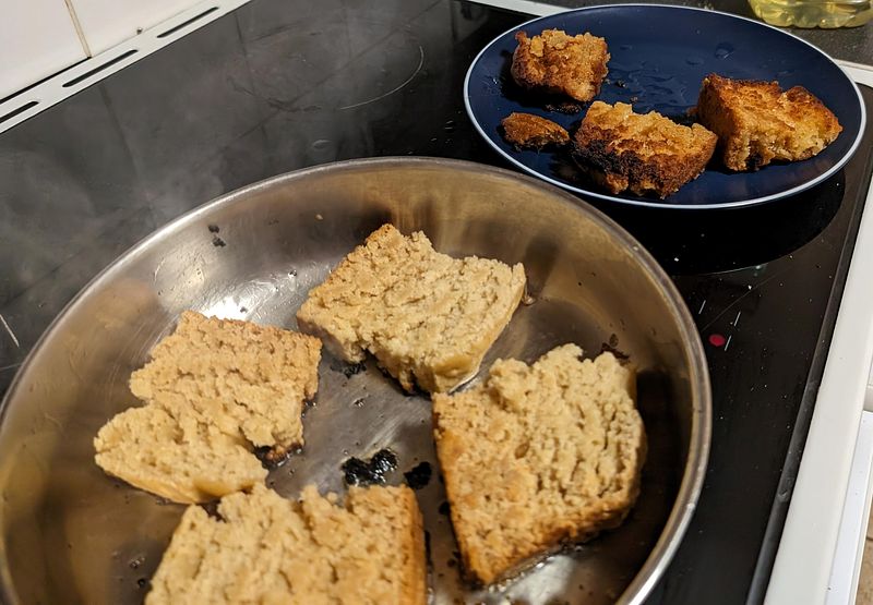 - Once baked, slice the bread and enjoy it as is, or for a crusty on the top of the fluffy texture, slice it, coat the slices with oil, and either pan-fry or oven-bake them.